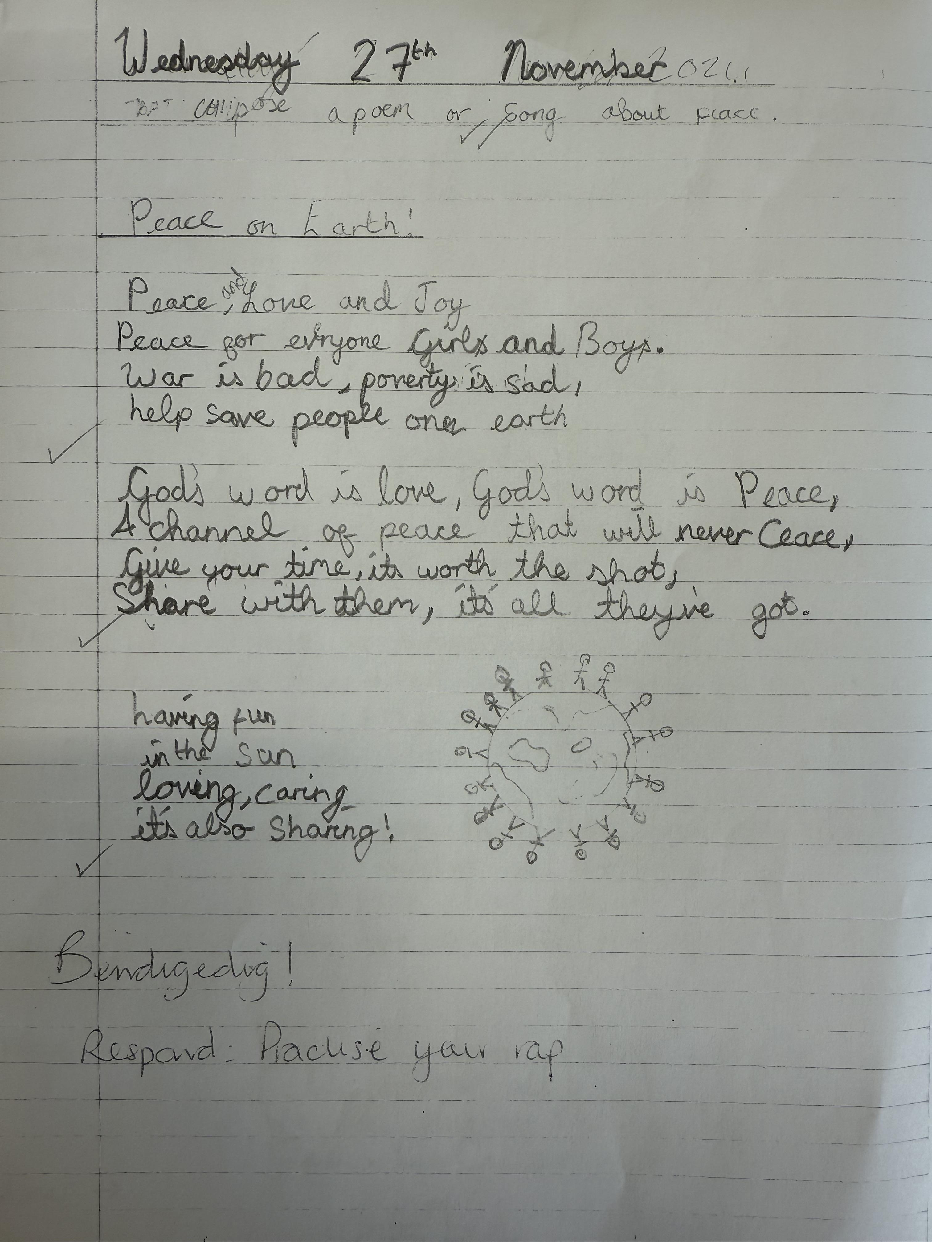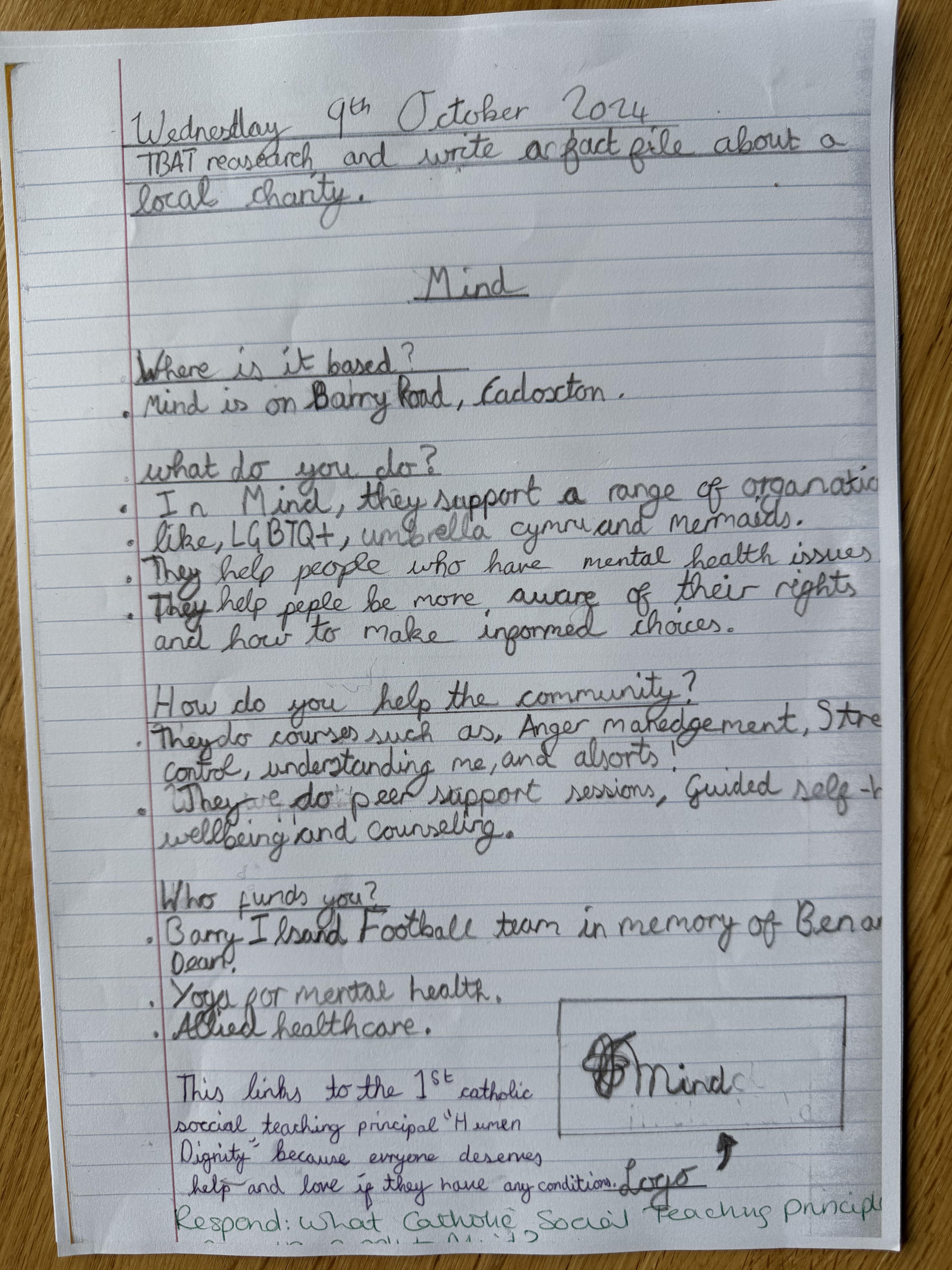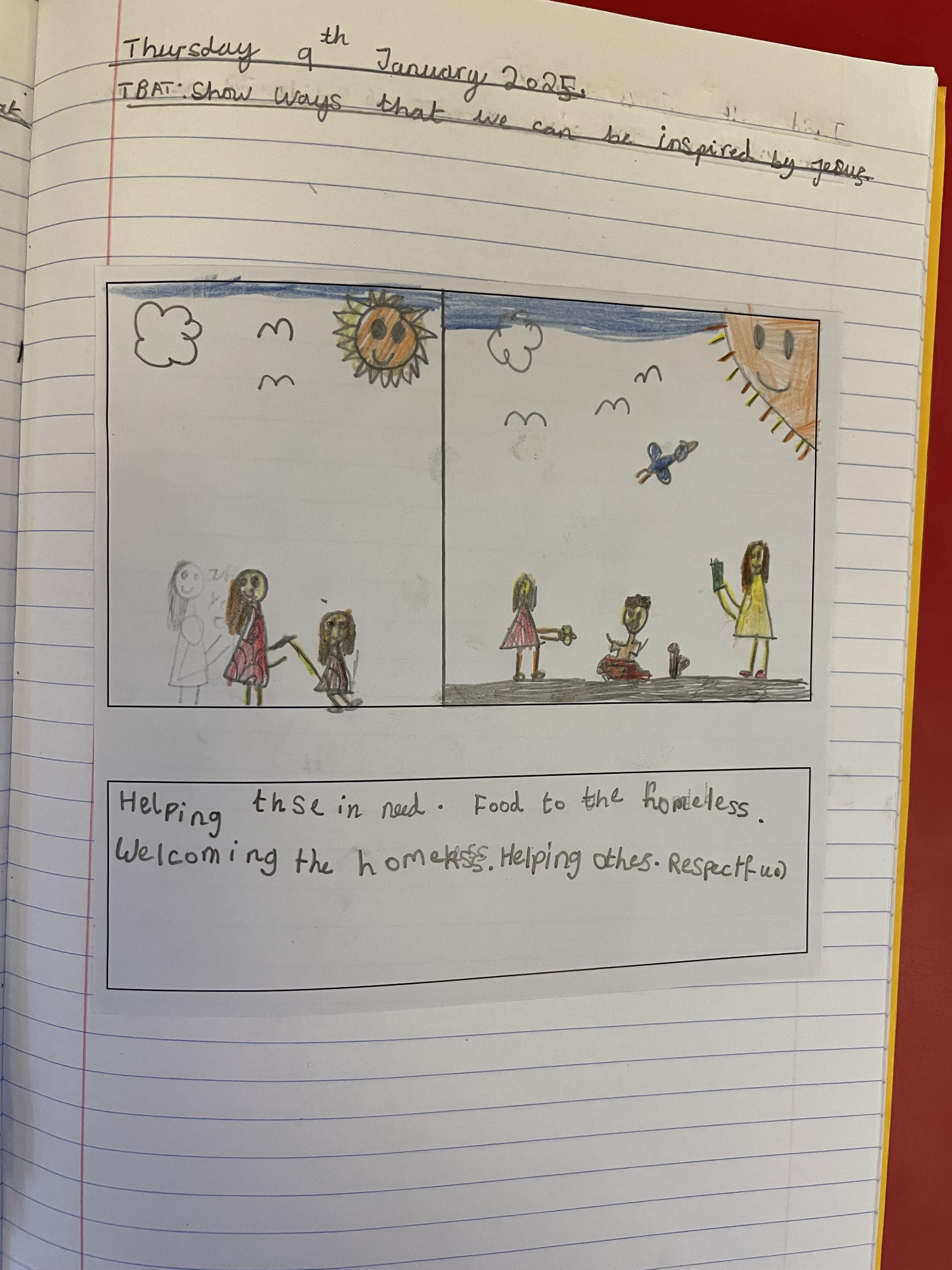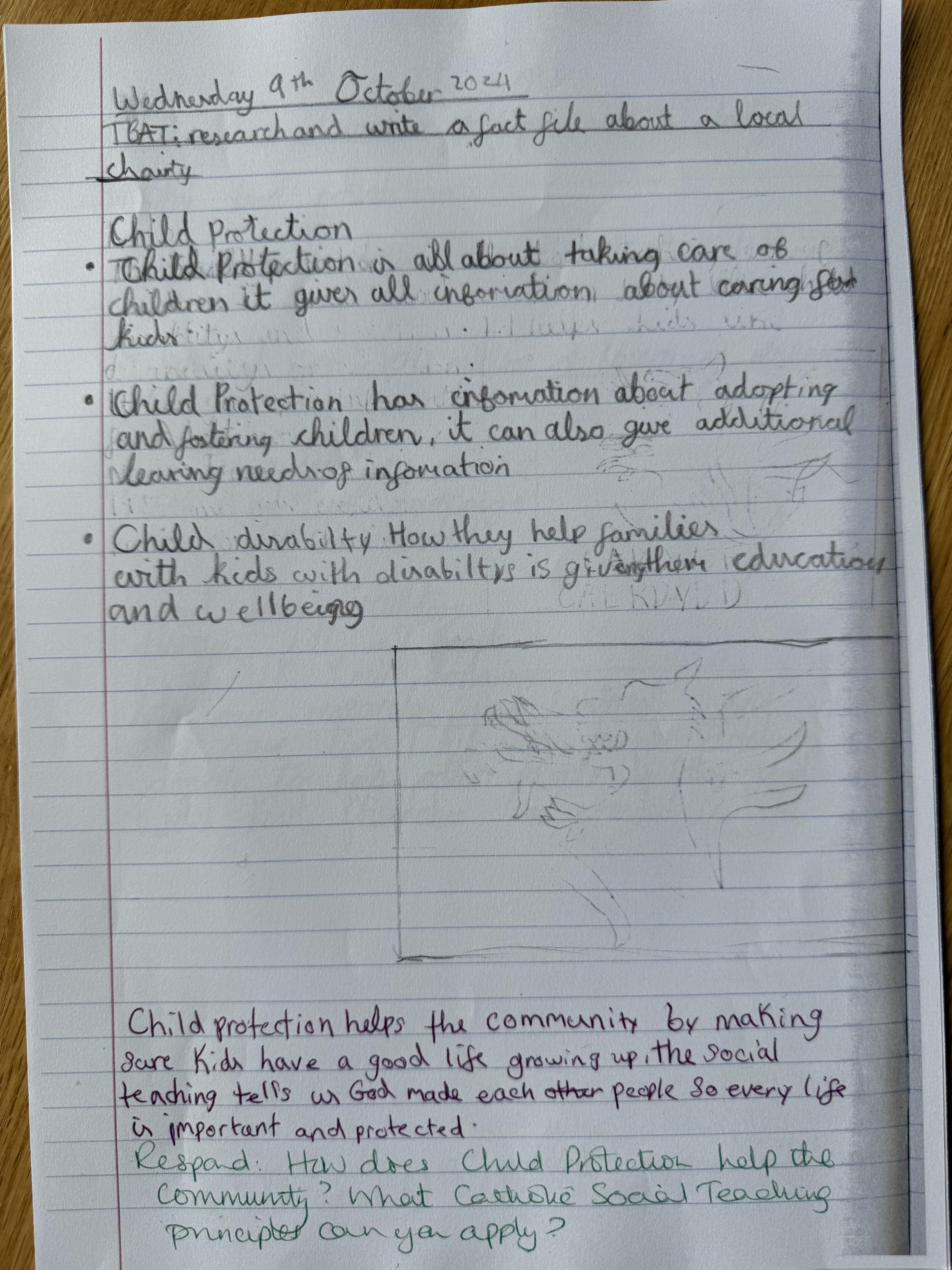 In our liturgy, the scripture reading taught us that God created humans in His own image and likeness, which means that we are special and valuable to God. We thought about how treating someone with dignity means treating them with love, kindness and respect and that everyone should be treated with dignity because we are made in the image and likeness of God.​ This means we should care for each other, help those in need, and stand up for what is right, just like Jesus taught us.