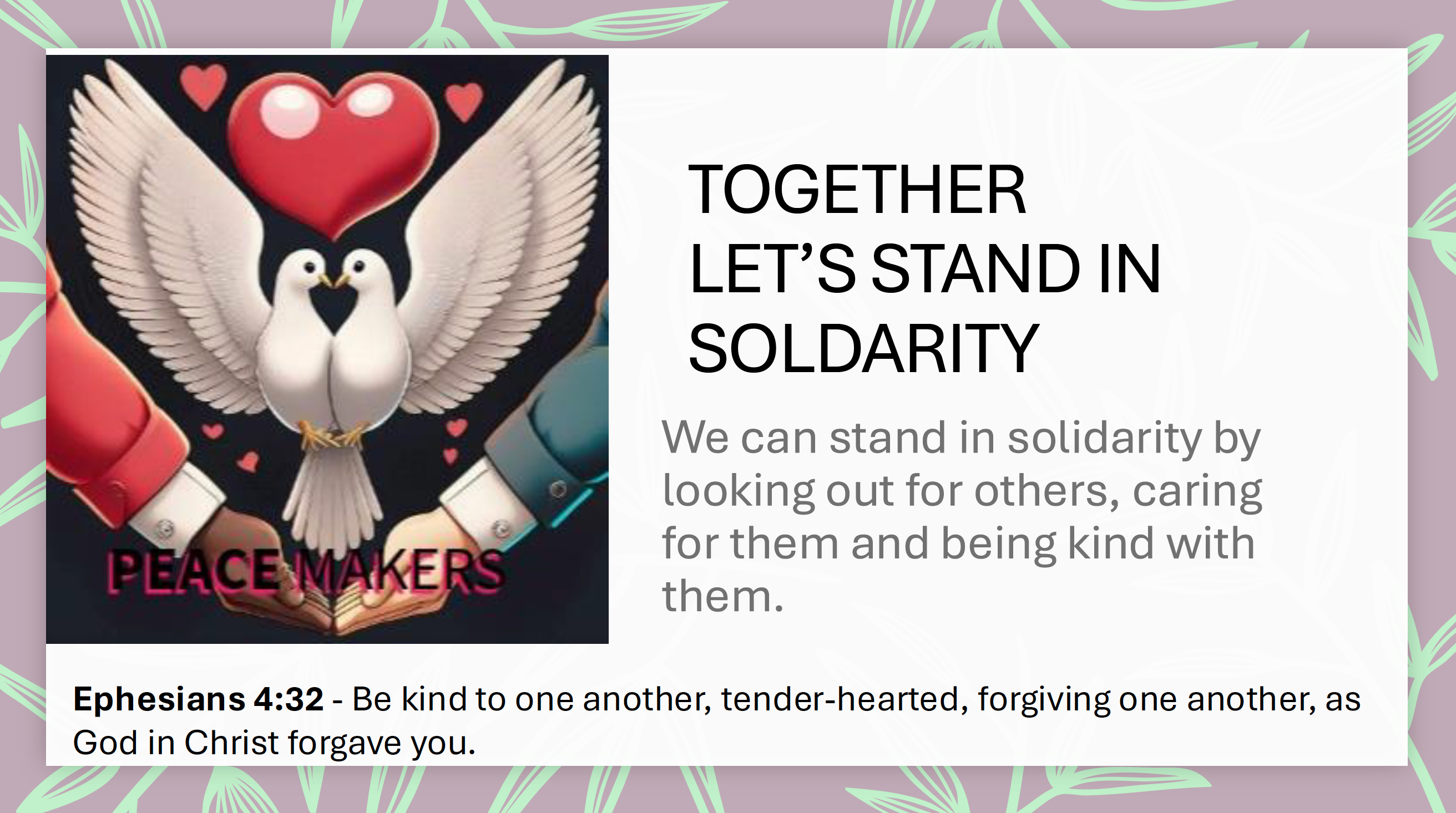 As Christians, we believe that everyone should be treated with kindness and respect, especially those who need help. Every person is special and loved by God. It’s important to listen to people who are struggling and speak up for them so they get the help and care they deserve. God calls us to look for those in need and work hard to support them as best we can.