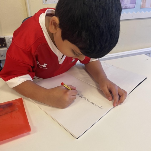 Drawing Welsh Love Spoons on St Dwywen's Day