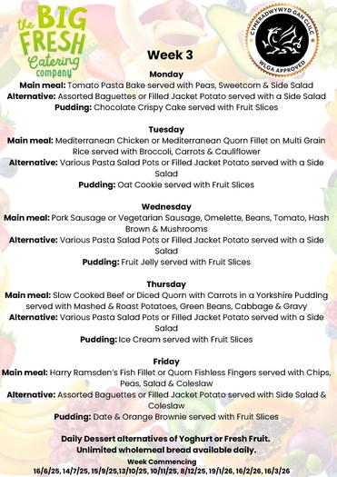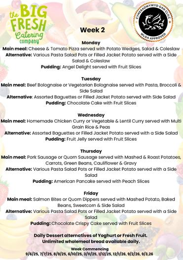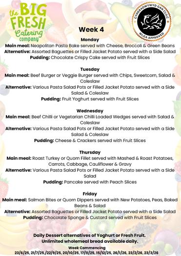 Please note that from the 1st April 2020 the cost of a school meal is increasing from £2.30 per day to £2.35 per day totalling to £11.75 for 5 meals.